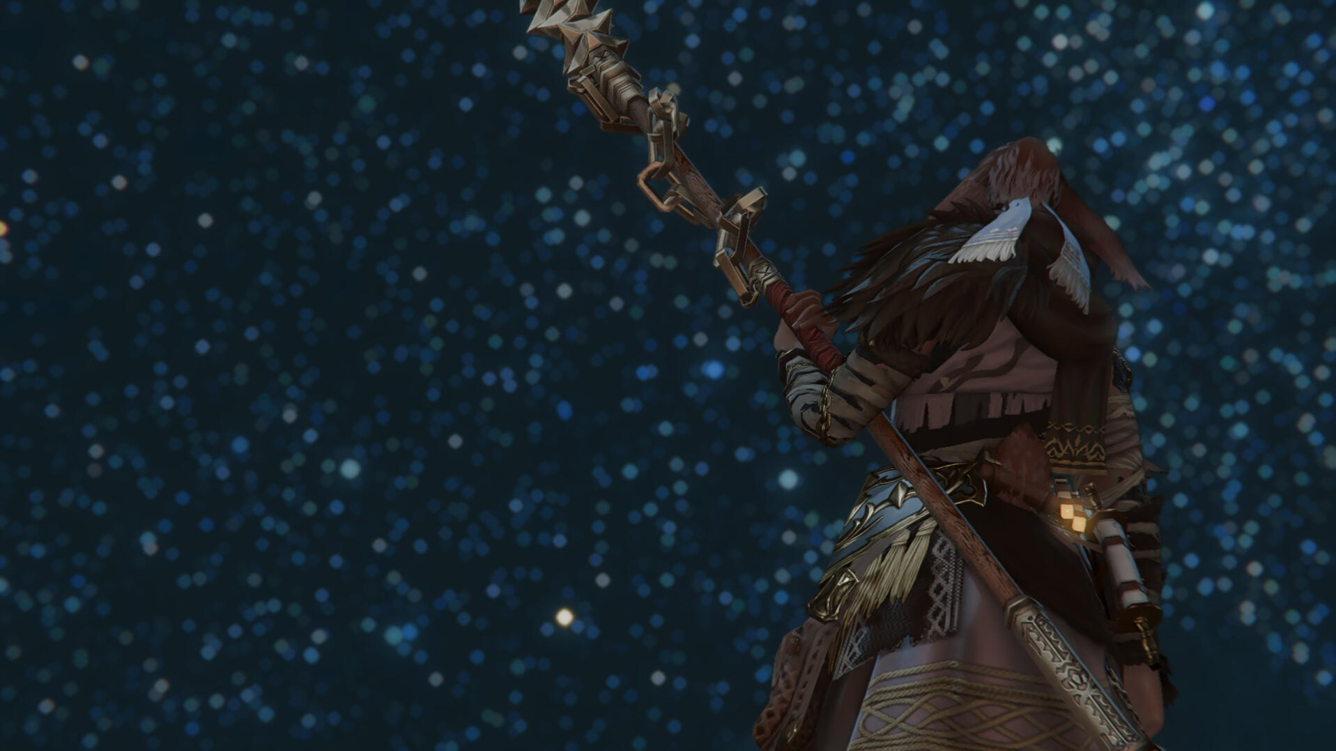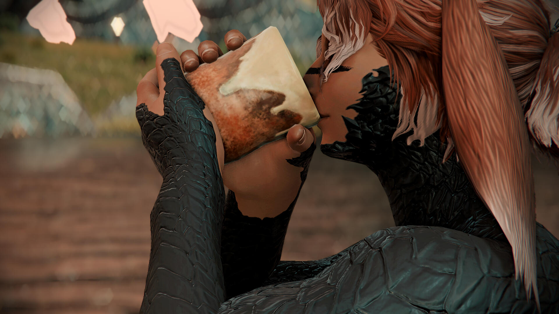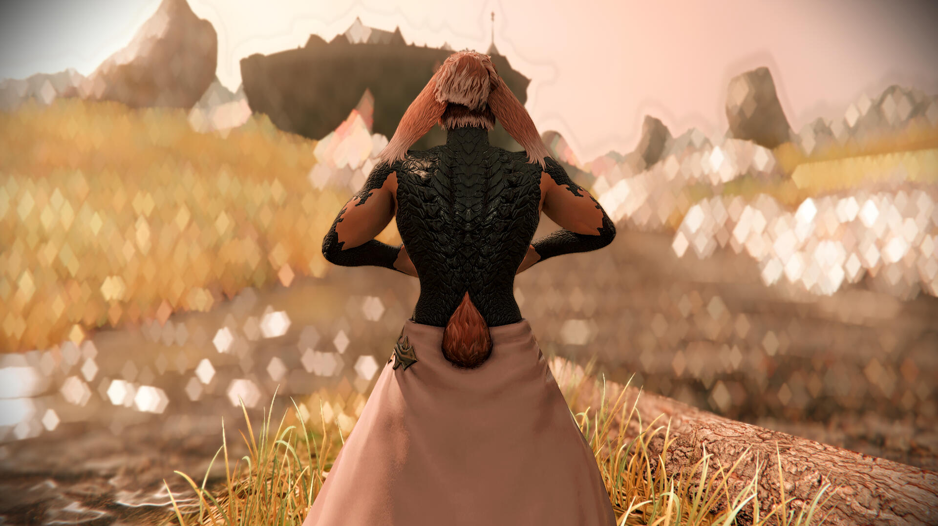 of course, it's hard to miss those lopped ears - and that cottonball of a tail he has behind him. he holds traits that are both uniquely viera, and xaela. which species does he relate to more, though?