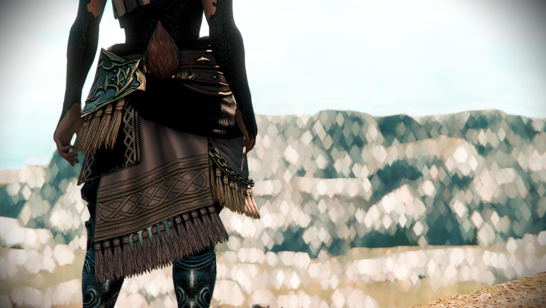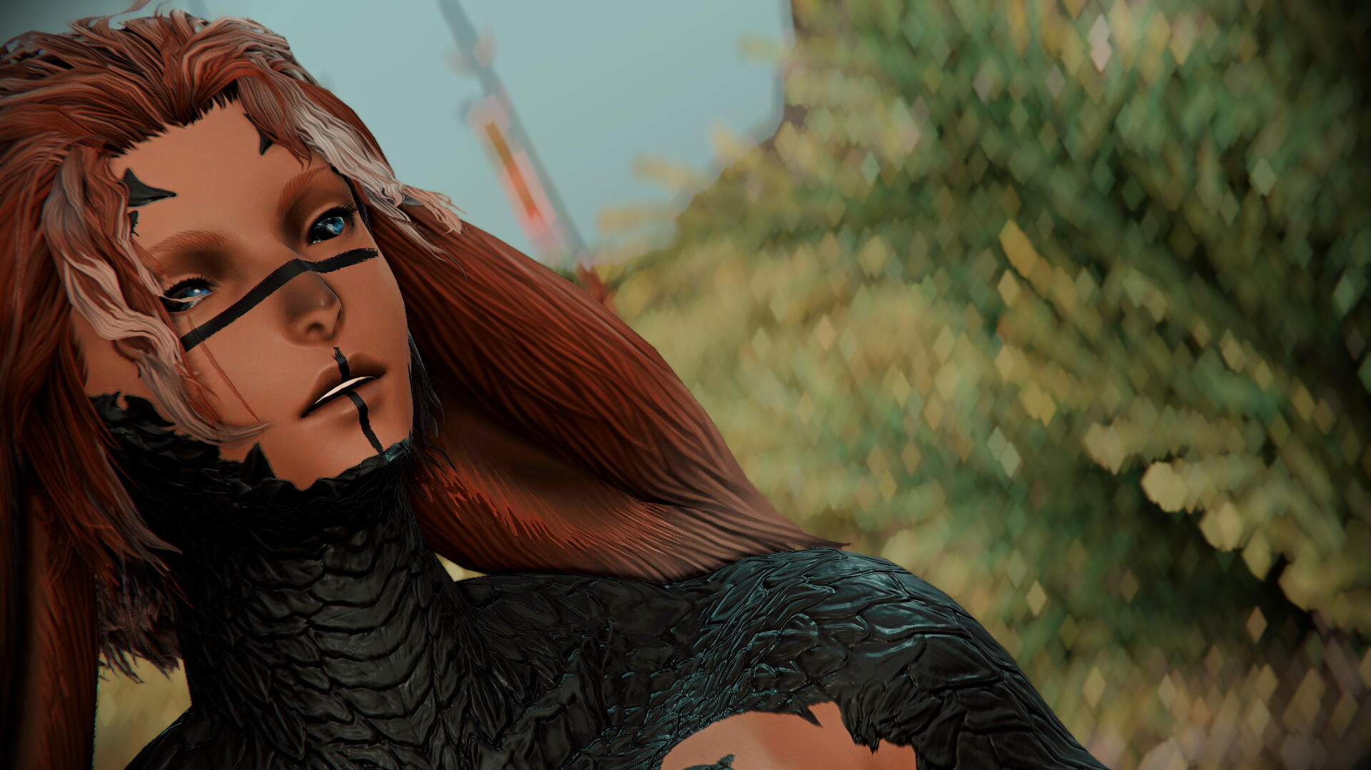 as you move closer, you begin to notice something more peculiar about this viera. not only is he tall, but he appears to have black scales littering his flesh; scales not unlike those found upon xaela. a half-breed, perhaps?